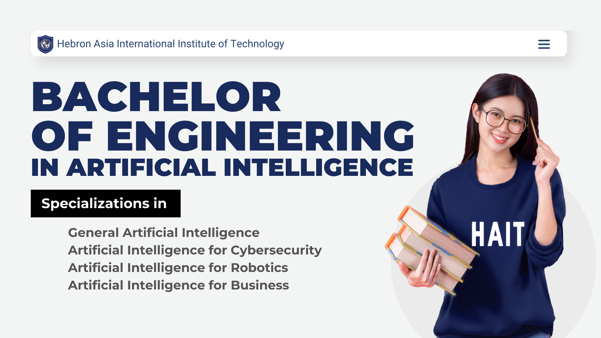 เตรียมพร้อมสู่อนาคตที่ไม่หยุดนิ่งกับหลักสูตรเฉพาะทางด้านปัญญาประดิษฐ์ ที่หลากหลาย ณ สถาบันเทคโนโลยีนานาชาติเฮบรอนเอเชีย ค้นพบข้อมูลหลักสูตรเชิงลึก โอกาสในการเติบโต และเส้นทางอาชีพที่น่าสนใจ ซึ่งออกแบบมาเพื่อบ่มเพาะศักยภาพของนักศึกษาให้พร้อมสำหรับความสำเร็จในเวทีโลก คลิกเพื่อเปิดประตูสู่อนาคตของคุณ!